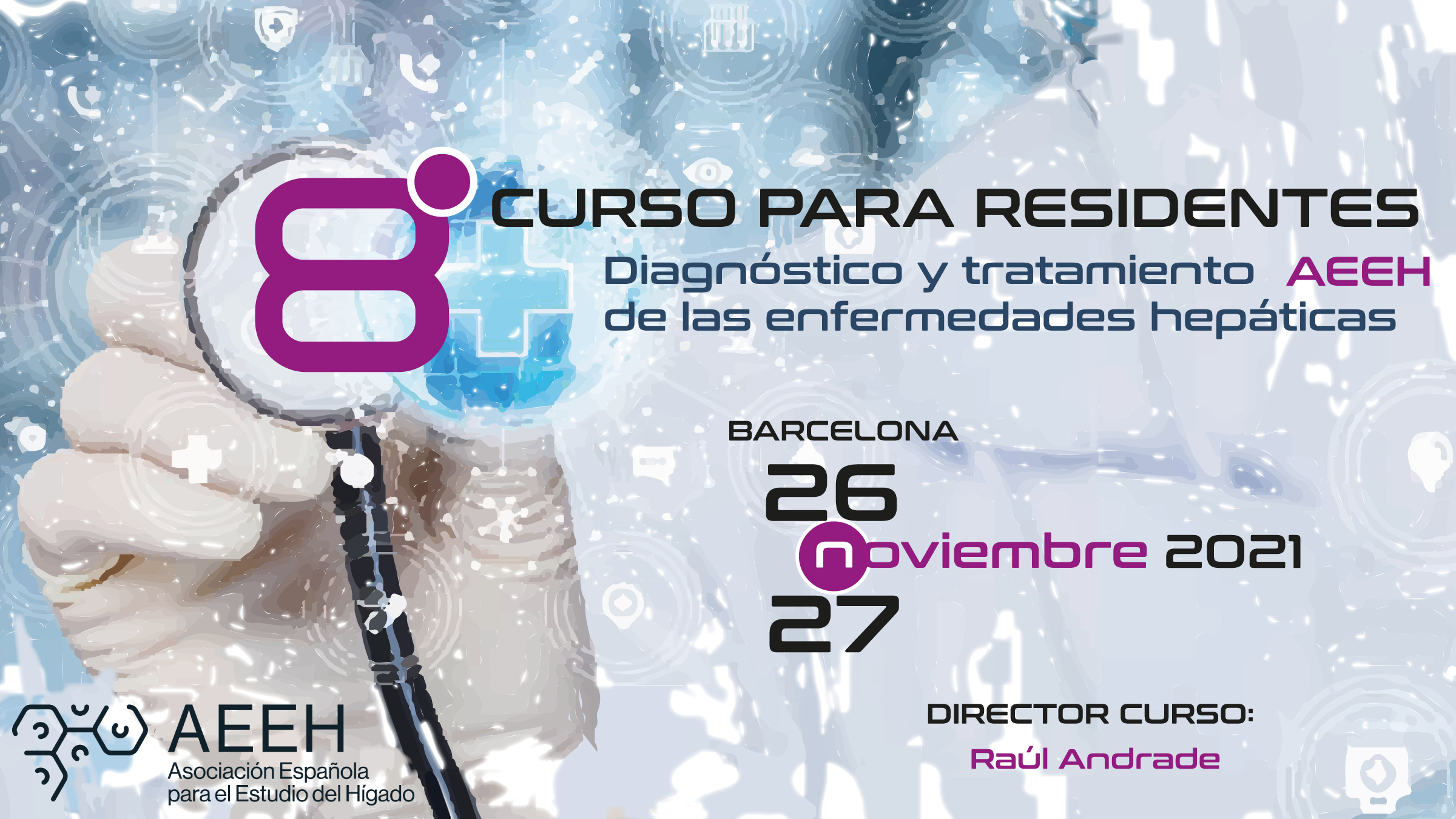 En noviembre vuelve el Curso de Residentes de la AEEH, ya en su octava edición y dirigido por el Dr. Raúl Andrade, del Hospital Universitario Virgen de la Victoria de Málaga. Se celebrará en Barcelona el 26 y 27 de noviembre en el Hotel Porta Fira y cuenta con un amplio panel de destacados hepatólogos que discutirán, junto con residentes, sobre distintas áreas clínicas de la Hepatología estructuradas en torno a 4 áreas principales: