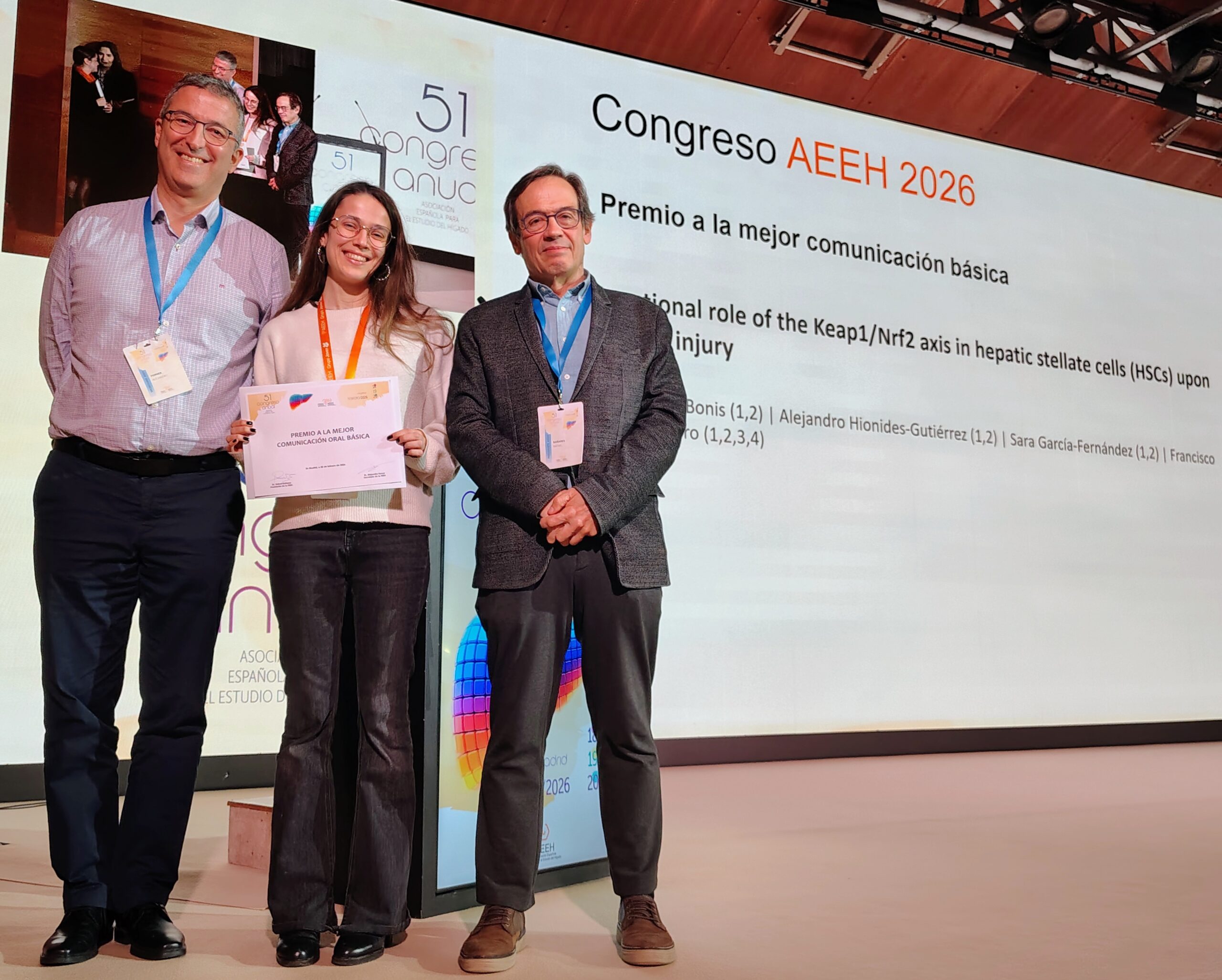 - Premio Mejor Comunicación Básica. «Functional role of the keap1/nrf2 axis in hepatic stellate cells (hscs) upon fibrotic injury». Coordinado por Magdalena Leiva. Recogió el premio Adriana de Bonis.