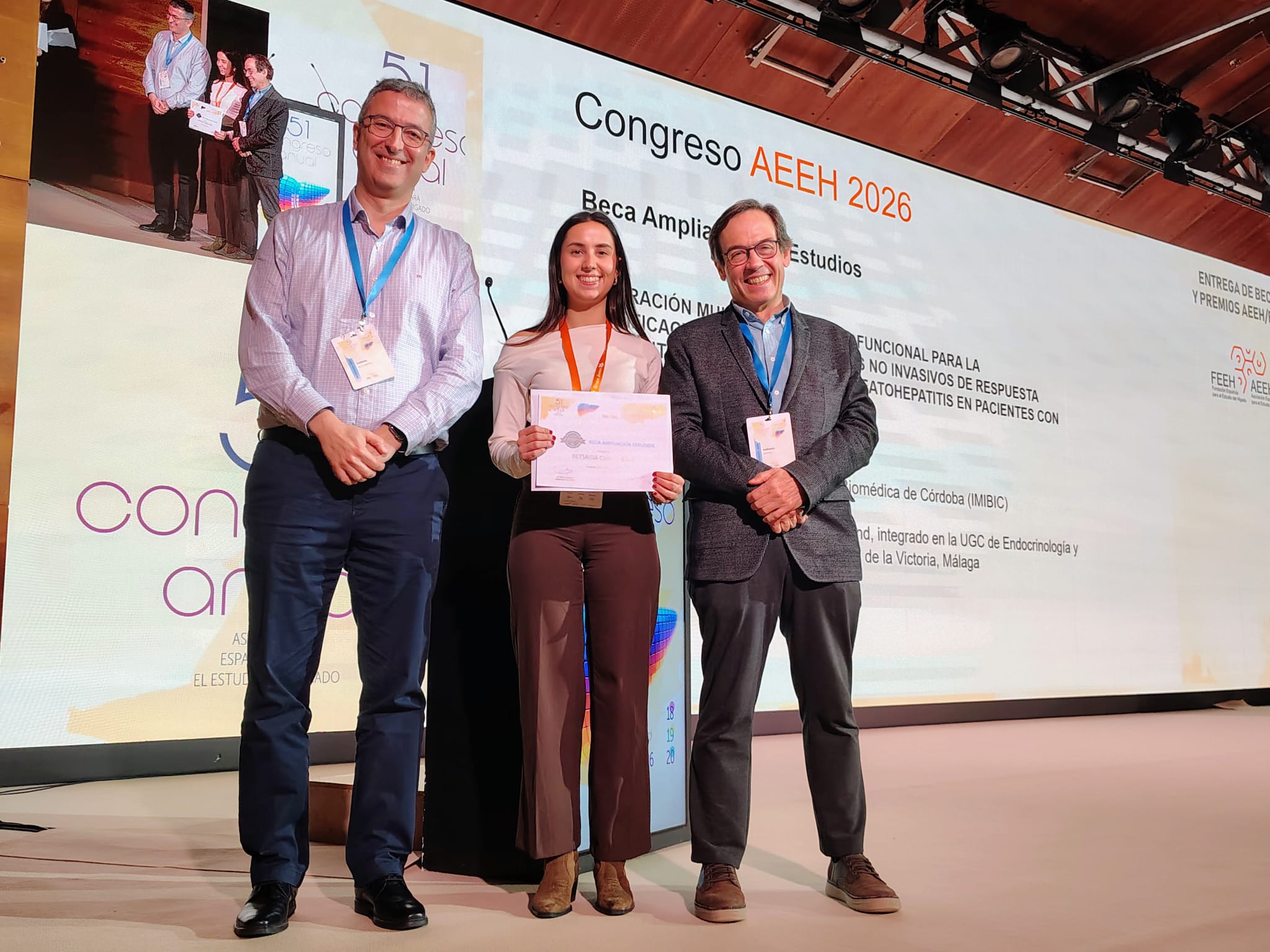 - 1ª Beca Ampliación de Estudios para Betsaida Ojead Pérez (IMIBIC) por «Integración multiómica y morfofuncional para la identificación de biomarcadores no invasivos de respuesta terapéutica y remisión de la esteatohepatitis en pacientes con obesidad».