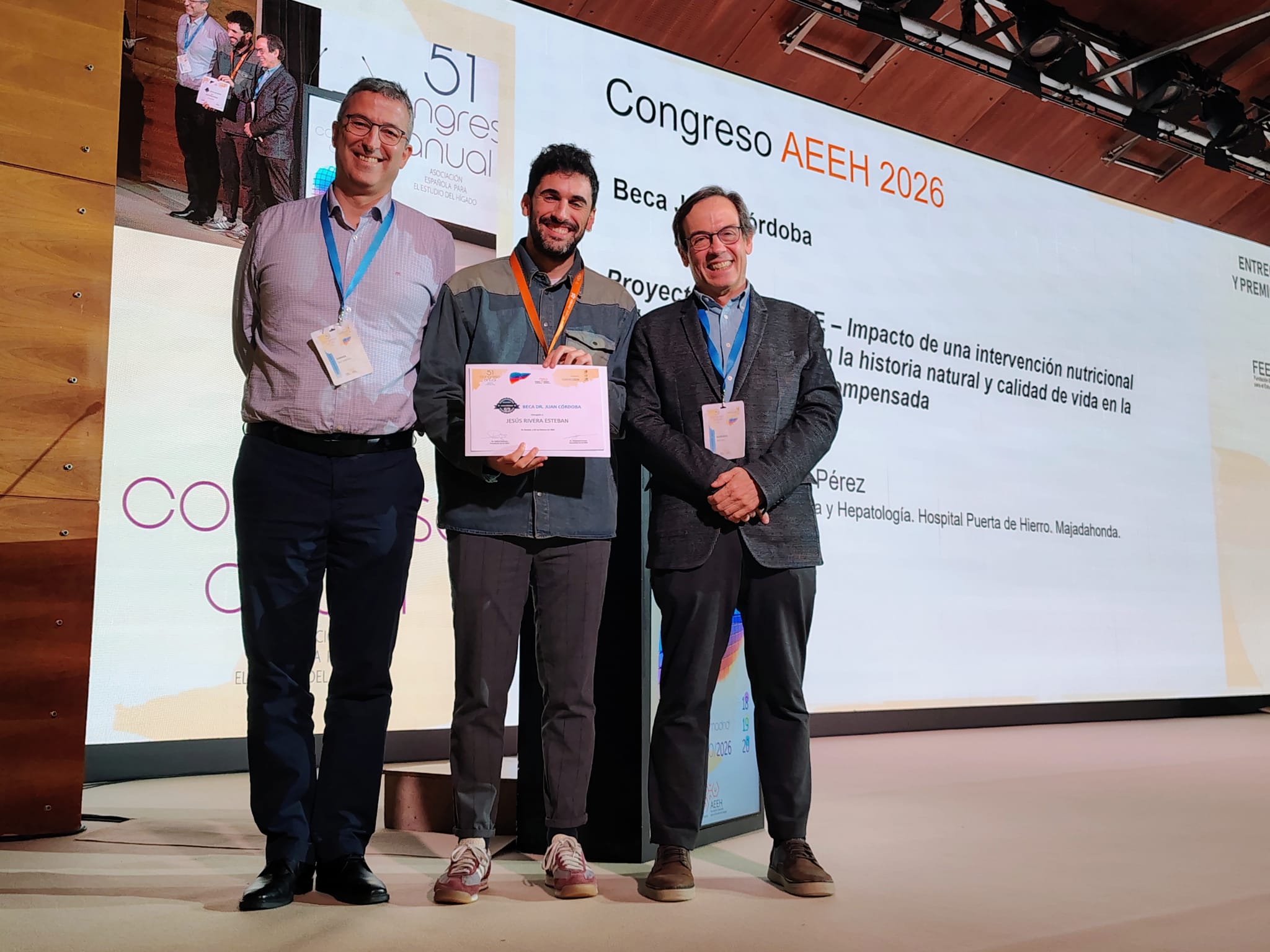 - Beca Juan Córdoba para Jesús Manuel Rivera Pérez (Hospital Puerta de Hierro), por «Proyecto LiverCare. Impacto de una intervención nutricional y de ejercicio físico en la historia natural y calidad de vida en la cirrosis hepática descompensada».
