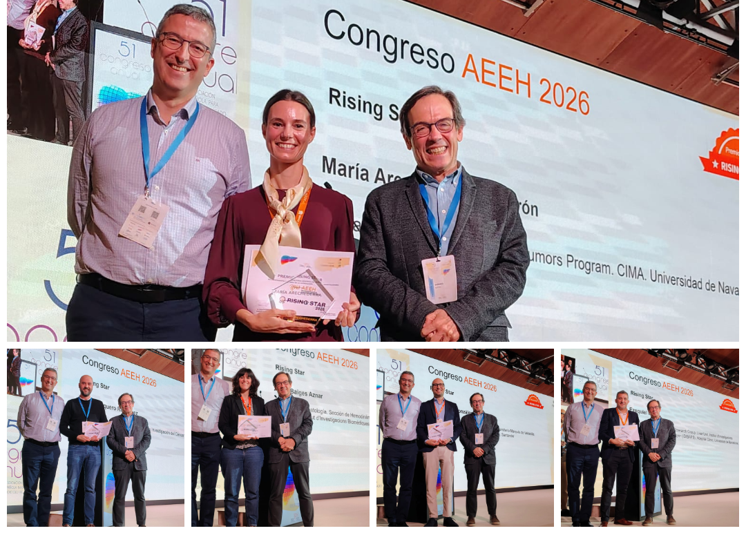 - 5 Becas Rising Stars para los investigadores: María Arechederra Calderón (CIMA), Javier Vaquero Rodríguez (CSIC-Univ. de Salamanca), Anna Baiges Aznar (IIB August Pi i Sunyer), Álvaro Díaz González (IDIVAL-Santander) y Ezequiel Mauro (Hospital Clinic).